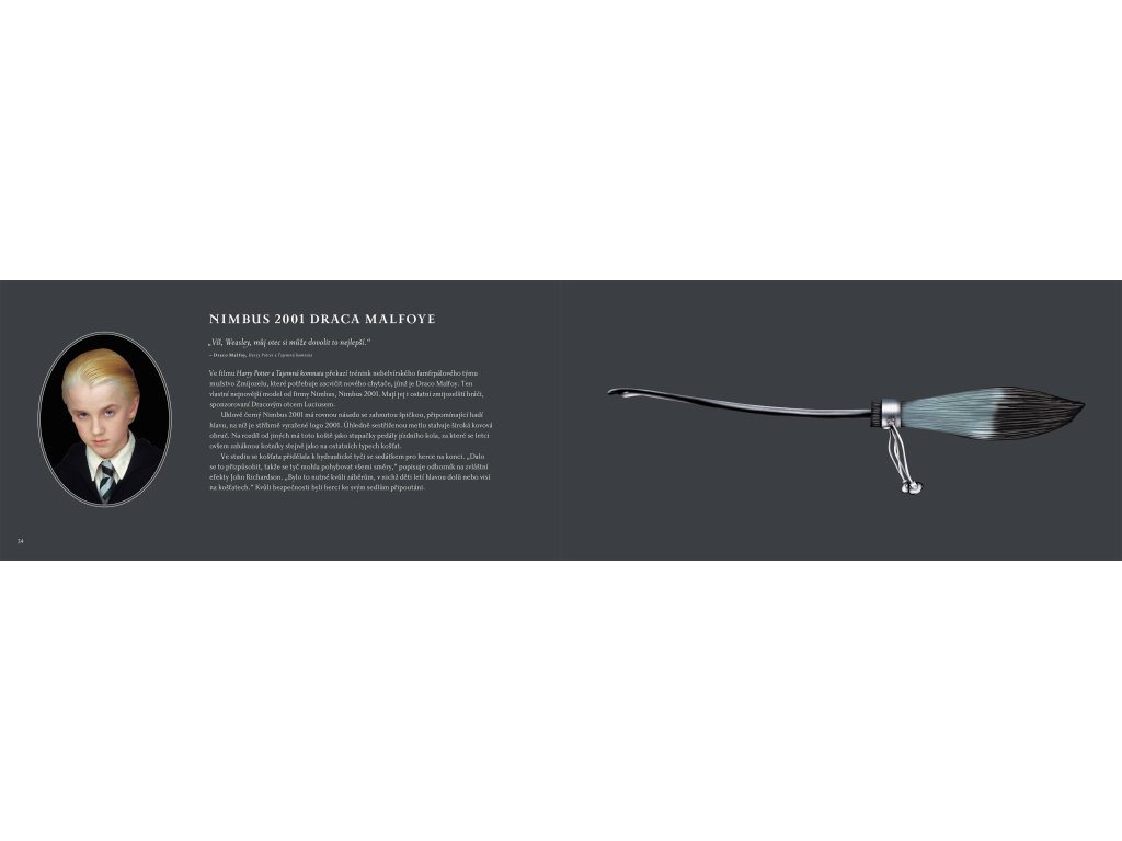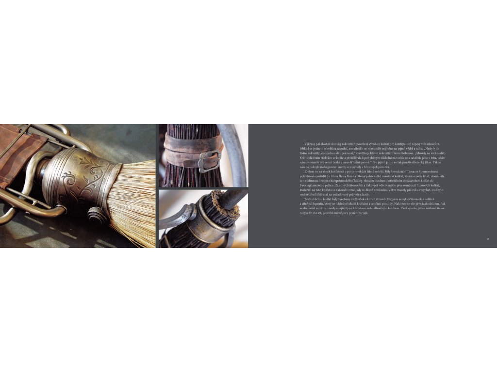 Designy létajících košťat jsou stejně rozmanité jako způsoby jejich používání. Tato kniha se detailně věnuje kouzelným košťatům z potterovských filmů, jejich výrobcům a samozřejmě i pilotům. Svou roli v oživení košťat na filmovém plátně sehráli nejen filmaři, kteří je navrhli a vyrobili, ale také herci, kteří na nich ve svých rolích s větším či menším úspěchem létali. Na létajícím koštěti můžete kličkovat kolem nebezpečných draků, unikat před Smrtijedy nebo se prostě jen tak vznést na oblohu. A samozřejmě nelze zapomenout na famfrpál!